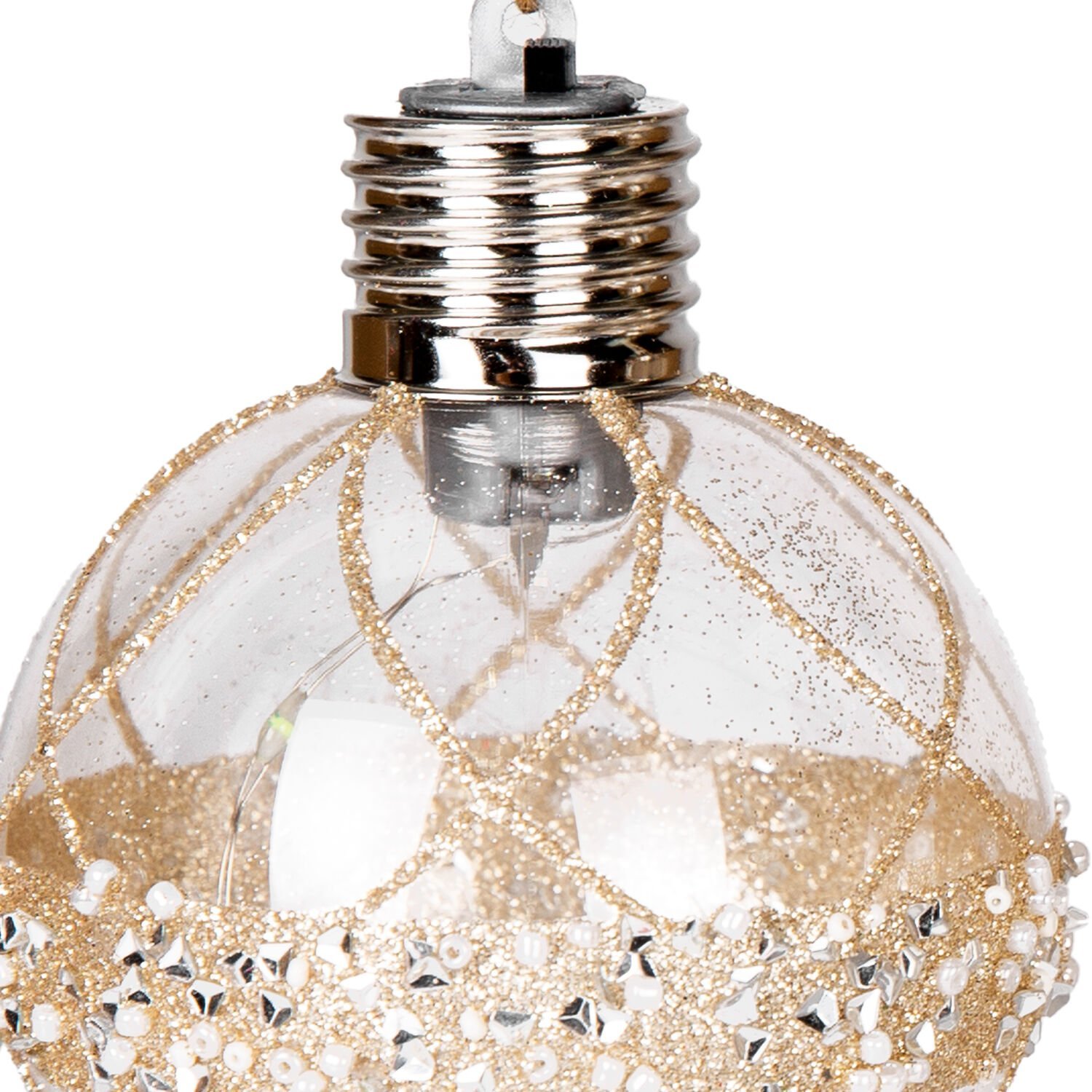 Yılbaşı Topu, Gold - Işıklı, 2'li Paket, 8 cm