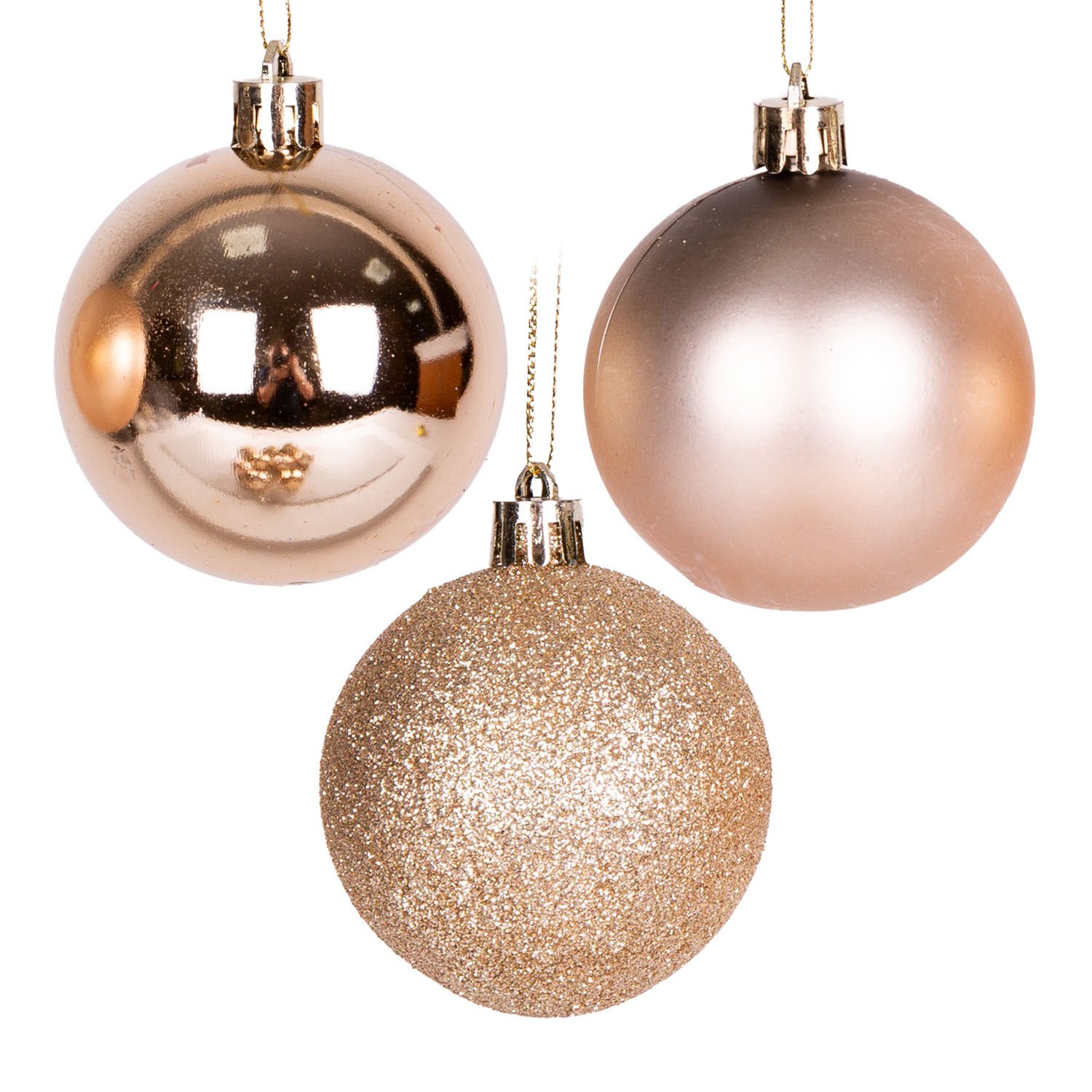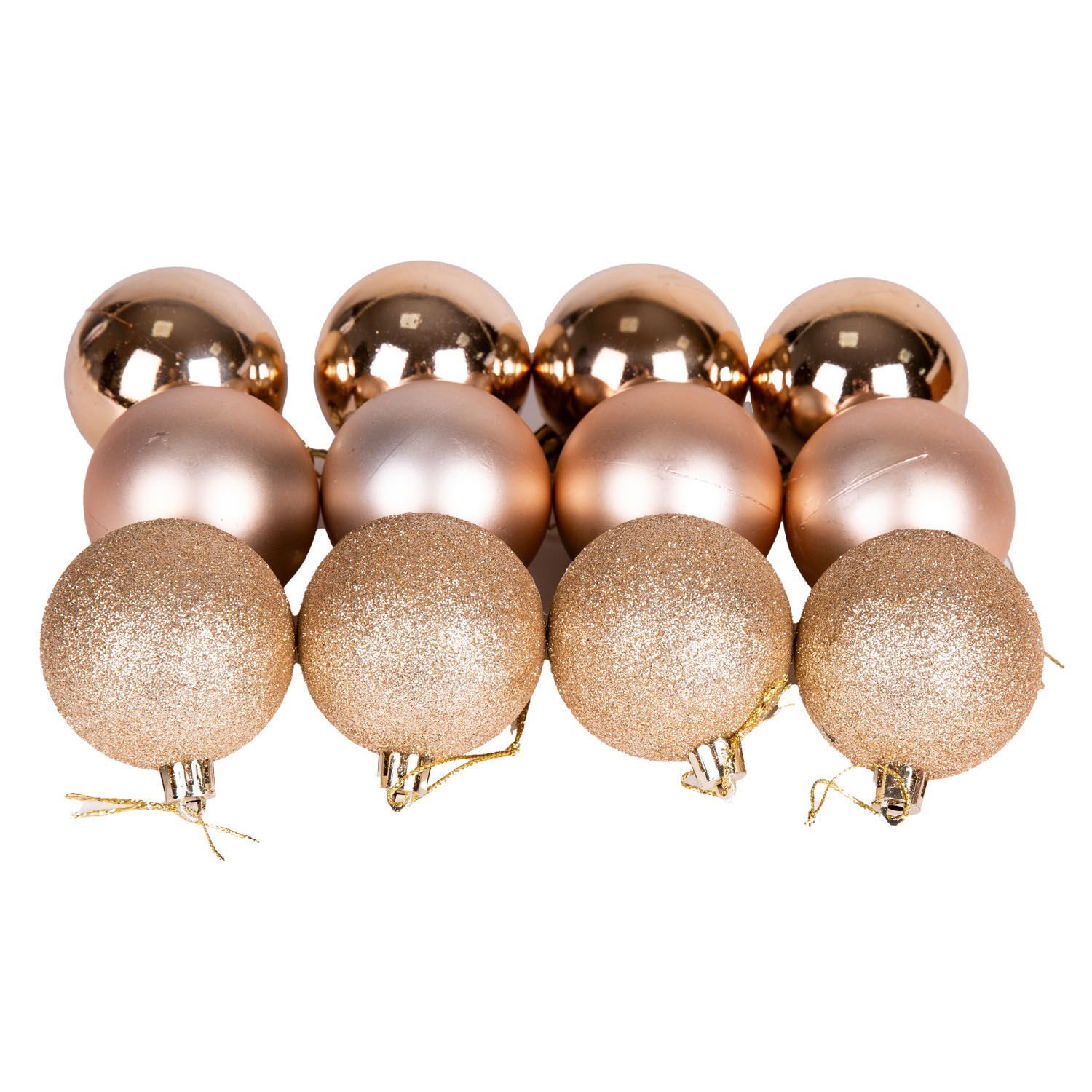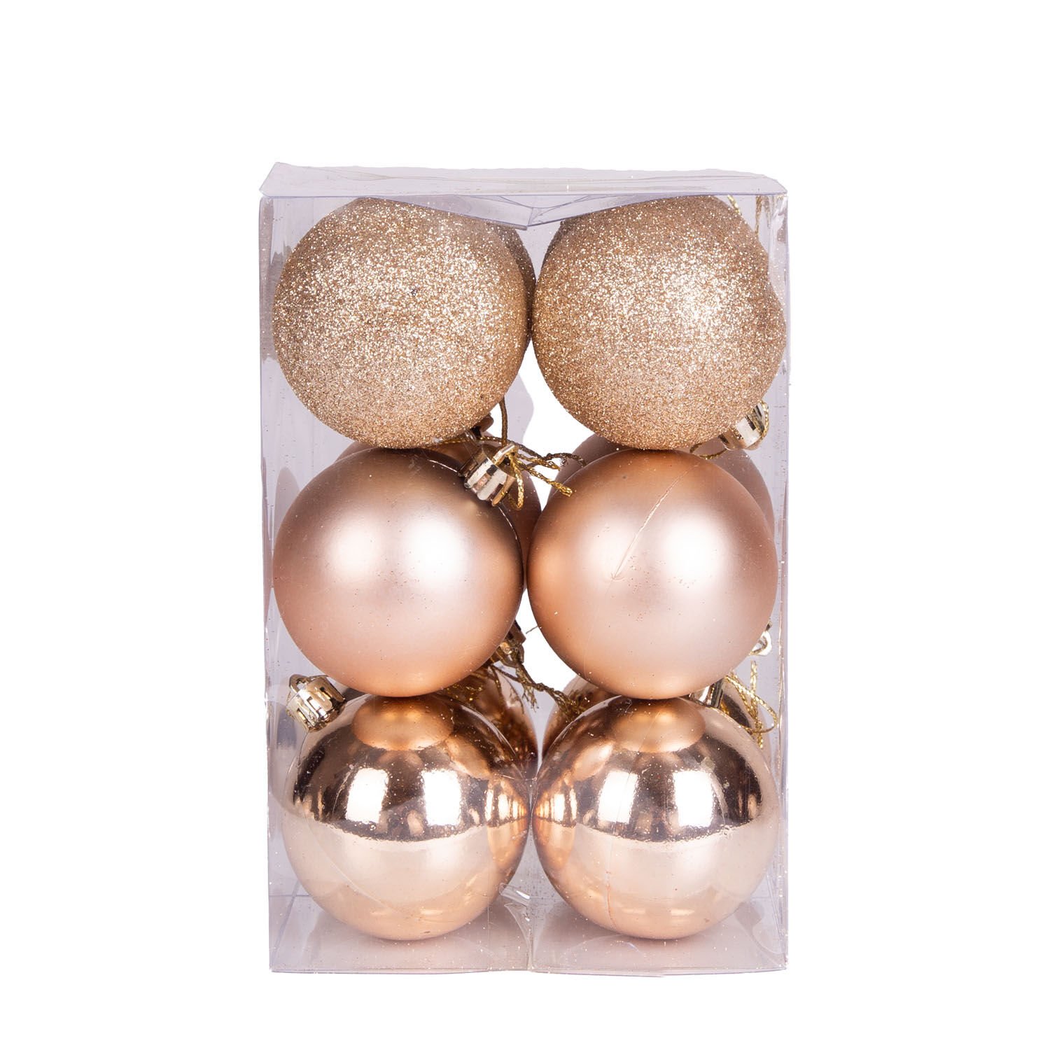 Yılbaşı Topu, Şampanya - Simli, Mat, Parlak, 12'li Set, 6 cm