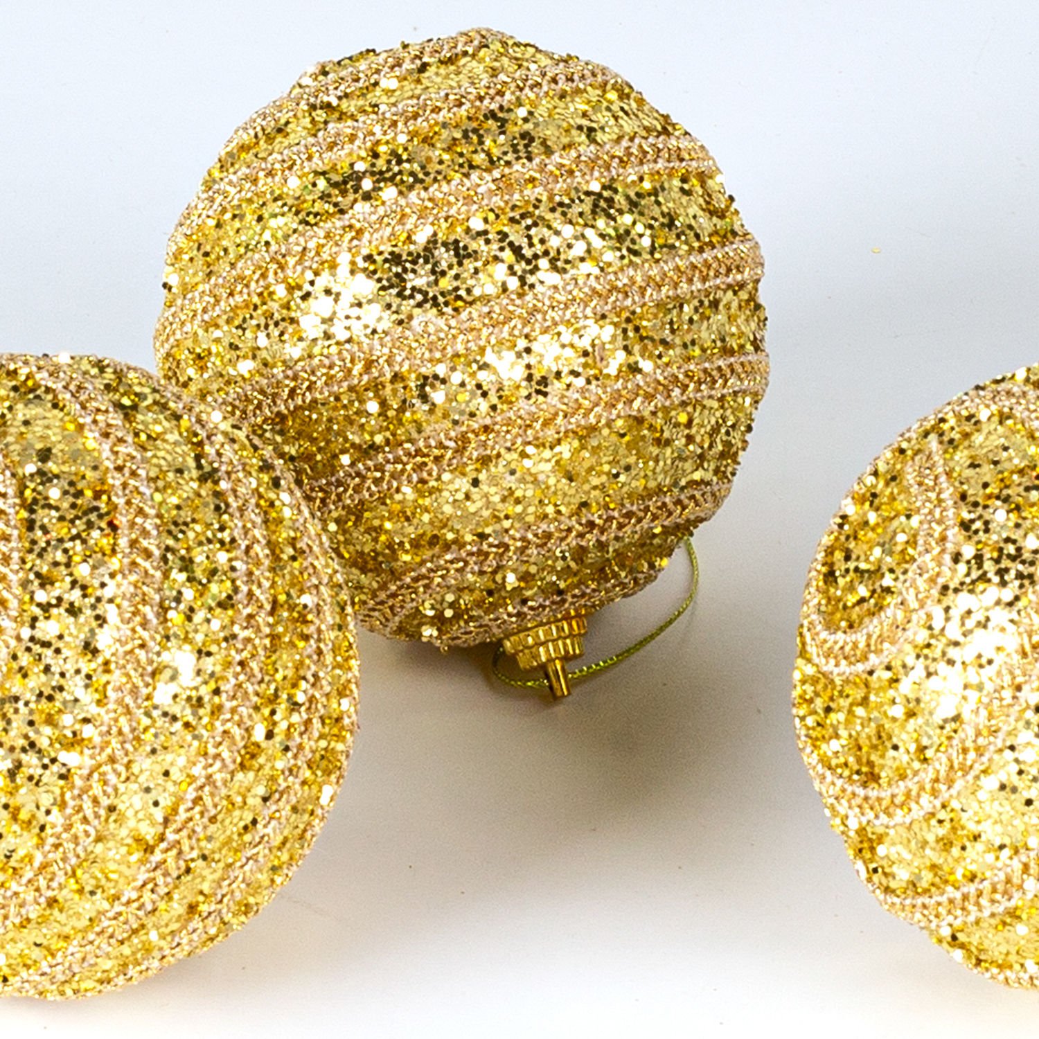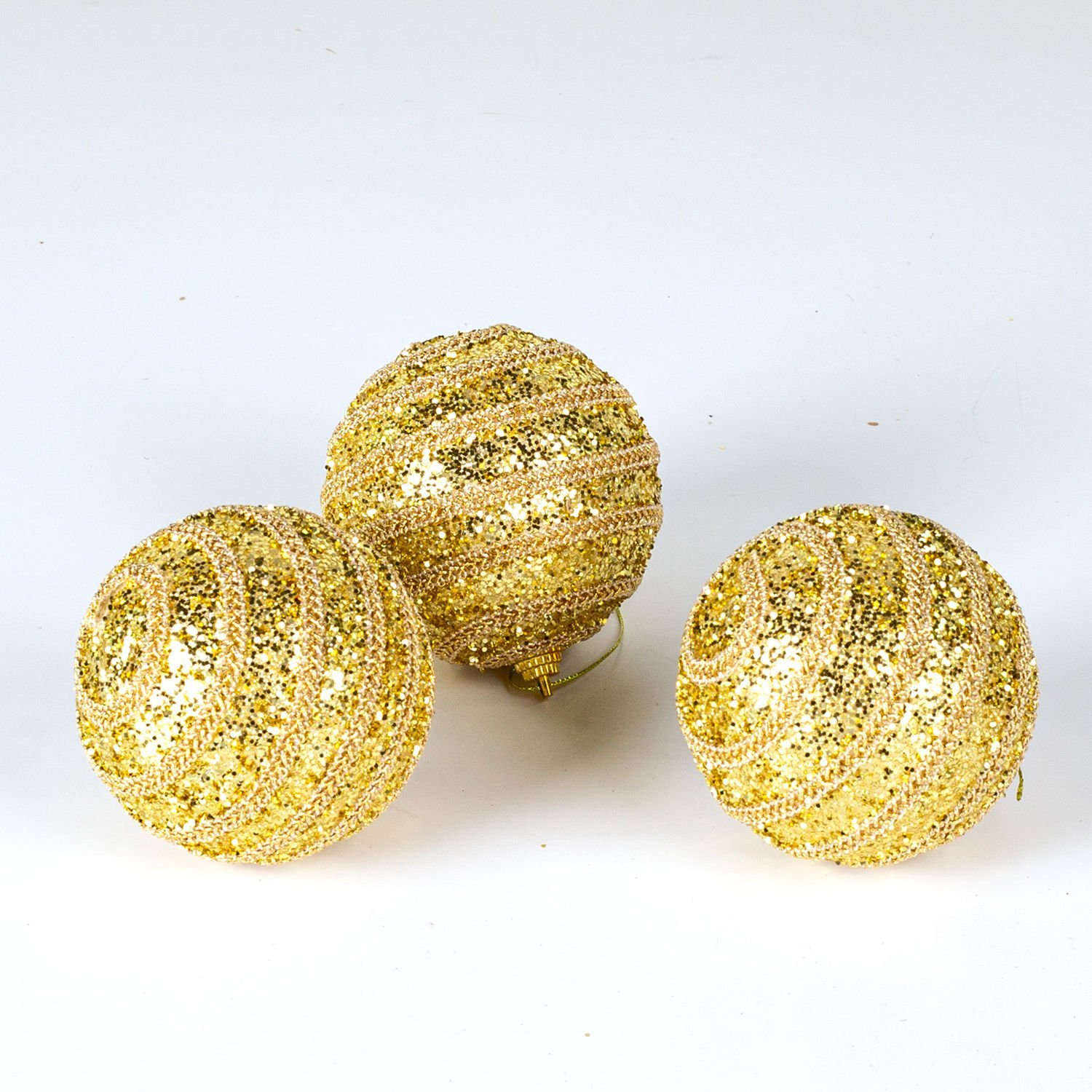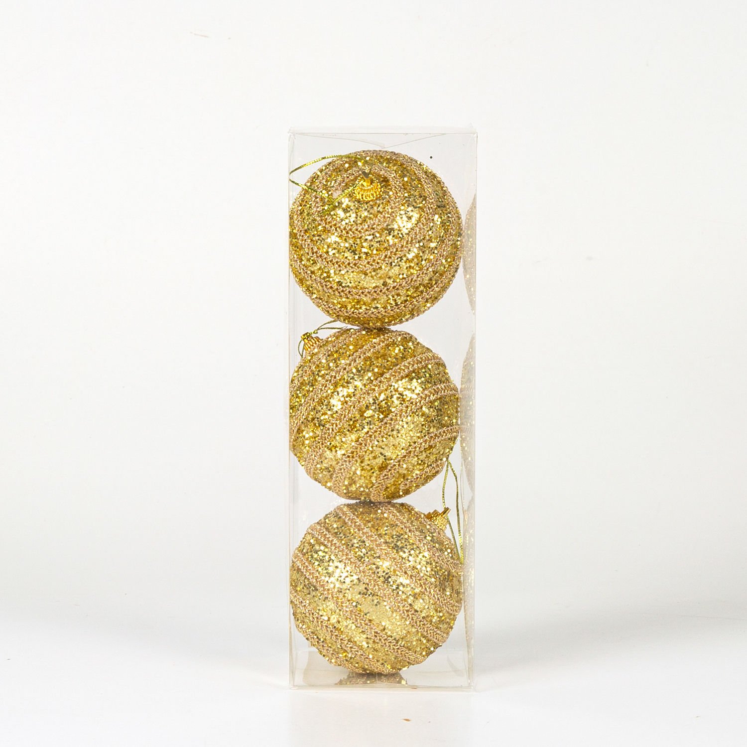 Yılbaşı Topu, Simli, Dore - 3'lü Paket, 8x8 cm