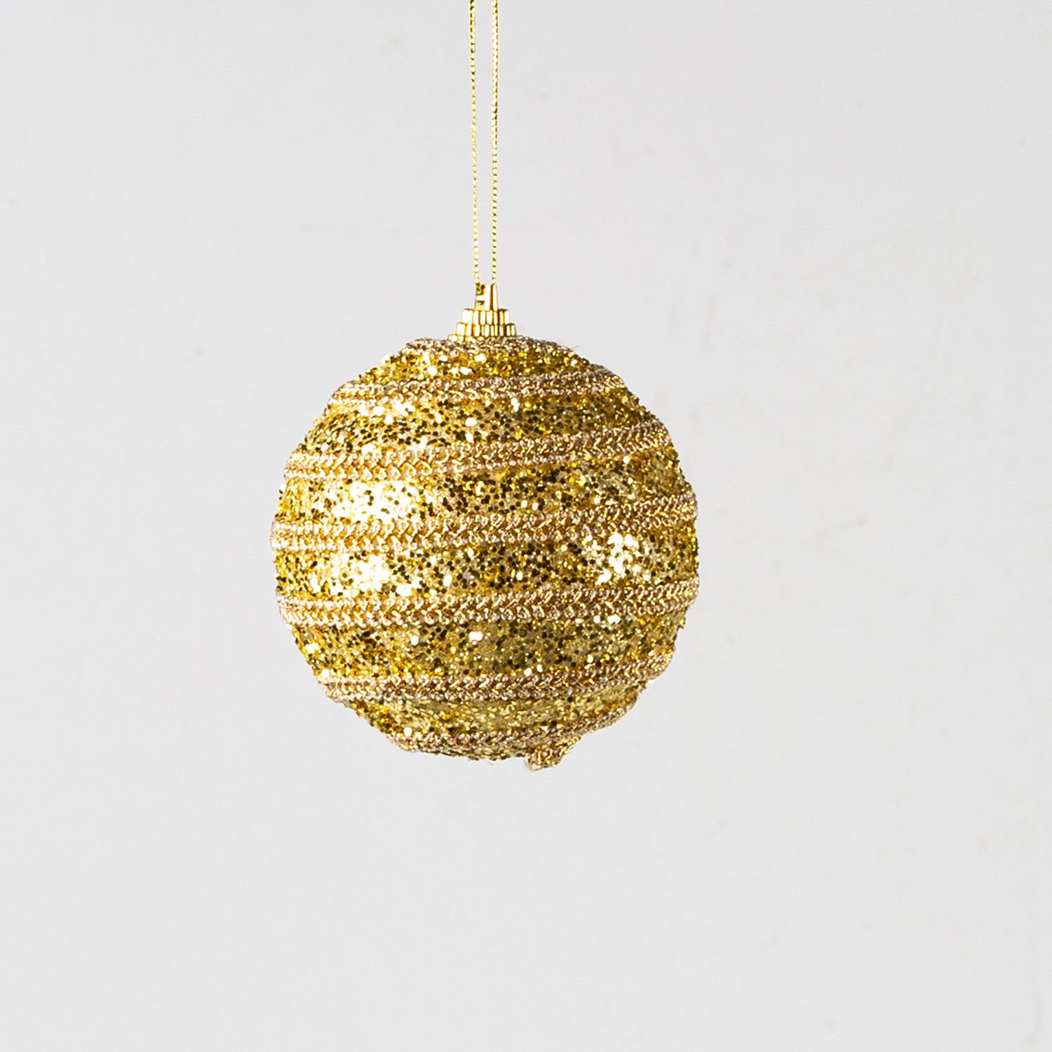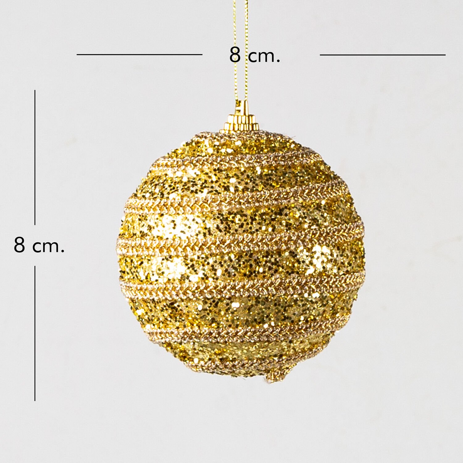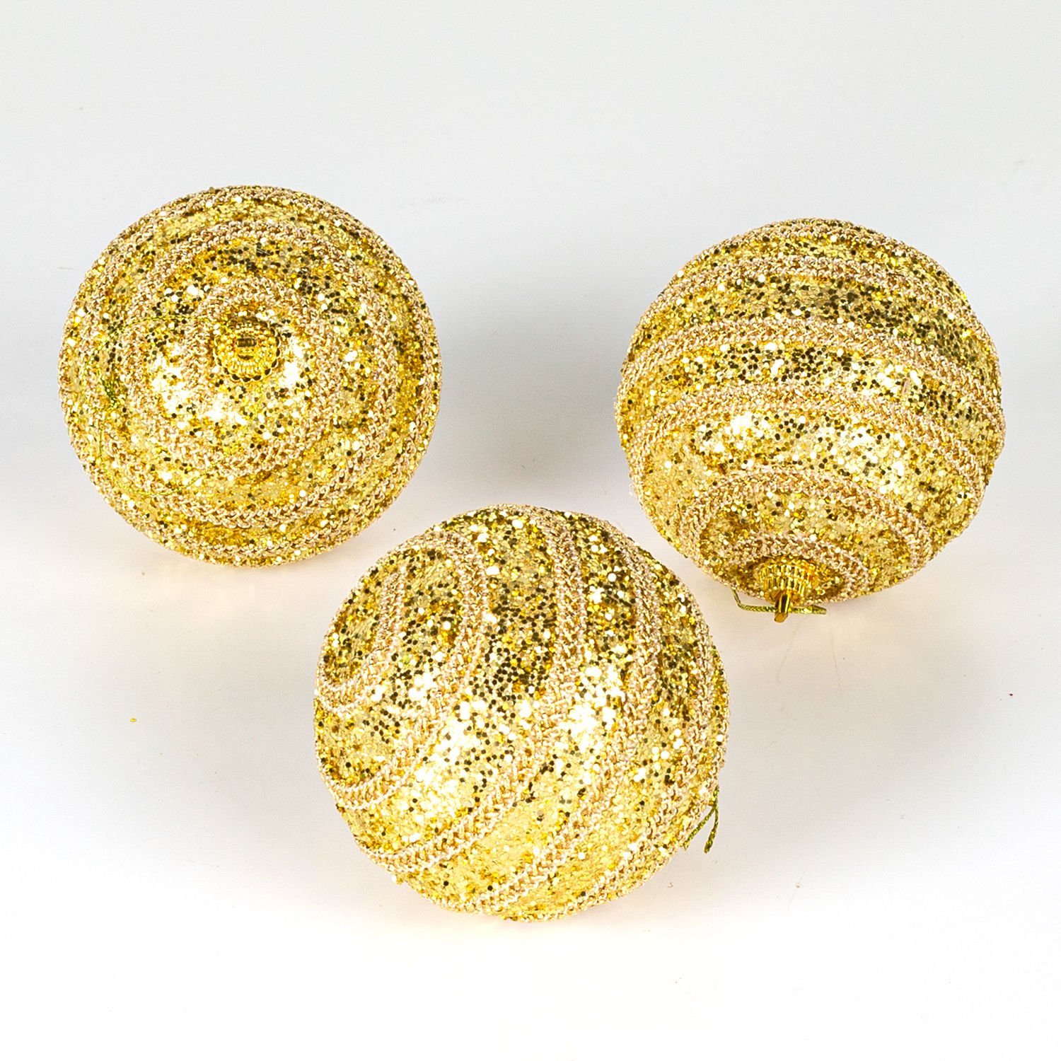 Yılbaşı Topu, Simli, Dore - 3'lü Paket, 8x8 cm