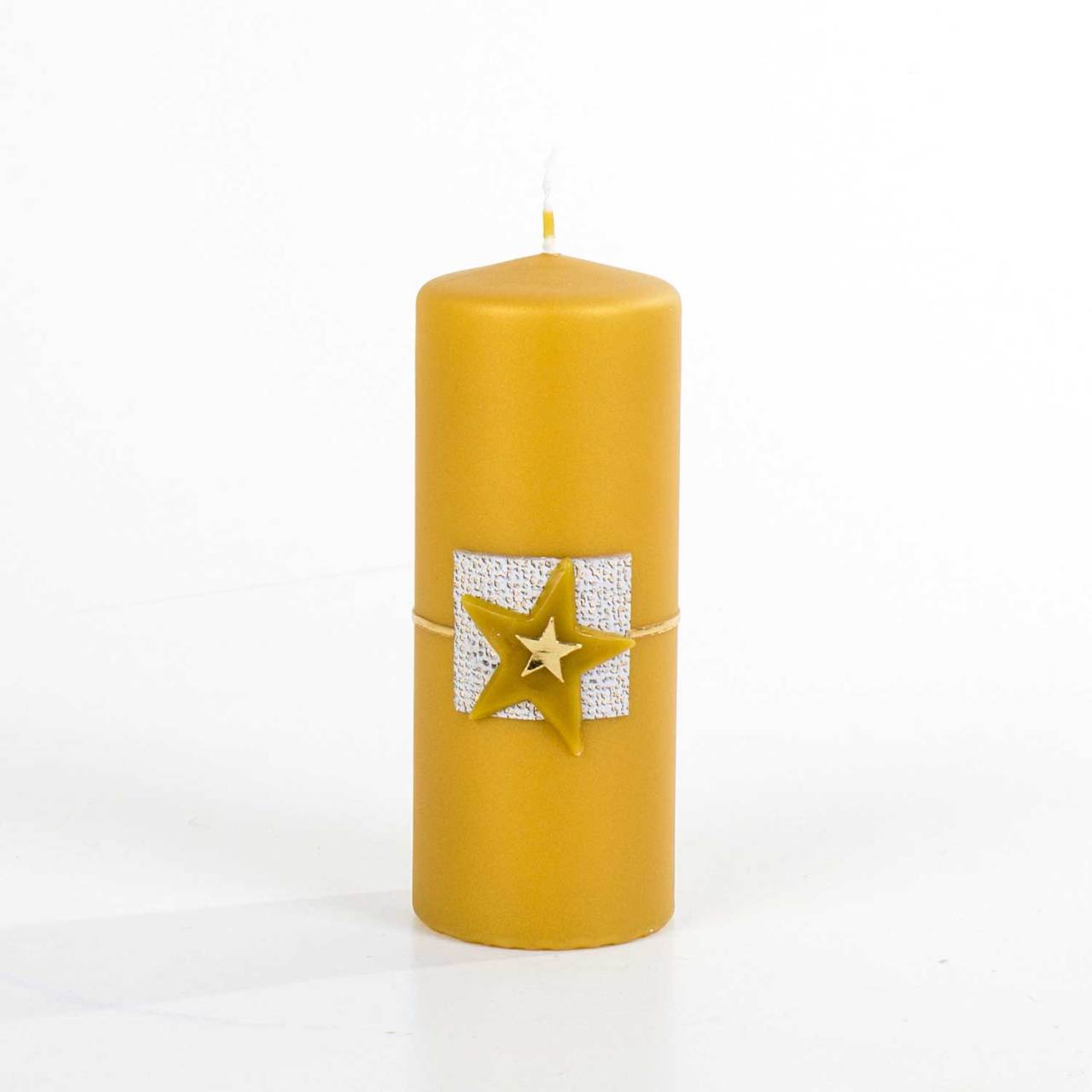 Yıldızlı dore kütük mum vaiana (natur gold 317g) 6x15 cm - Rengini dekorasyonlara göre belirleyebileceğiniz yıldız figürlü kütük mum çeşitleri ve kütük mum modellerimiz arasından evinize renk katıp, karanlık ortamları aydınlatabileceğiniz yılbaşı mumu olarak kullanılabilecek dekoratif yıldızlı dore kütük mum.