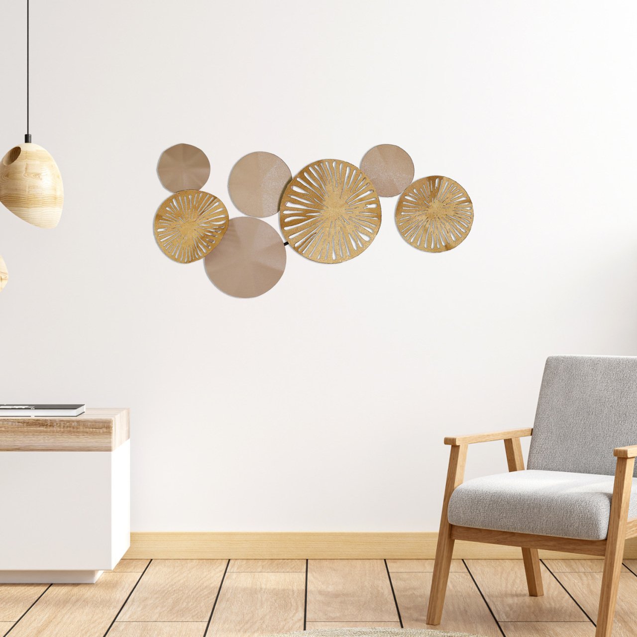 Yuvarlak Desenli Metal Bej/Dore Duvar Panosu 79x35 cm.