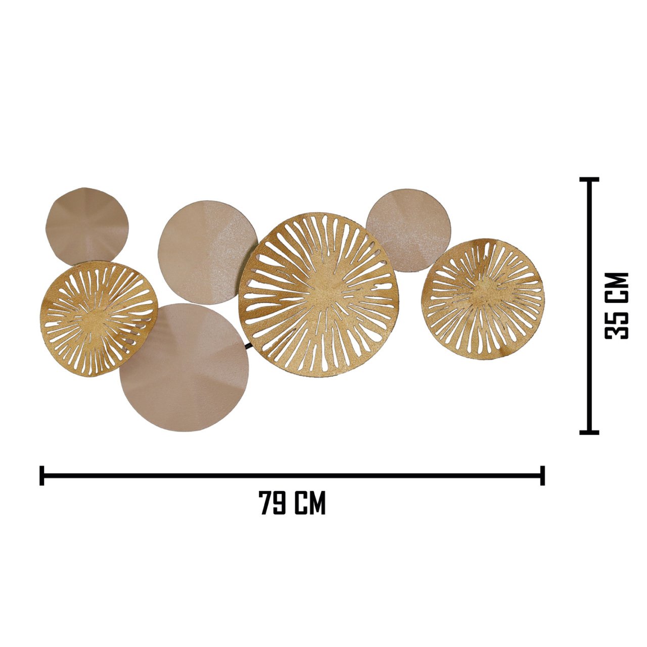 Yuvarlak Desenli Metal Bej/dore Duvar Panosu 79x35 Cm