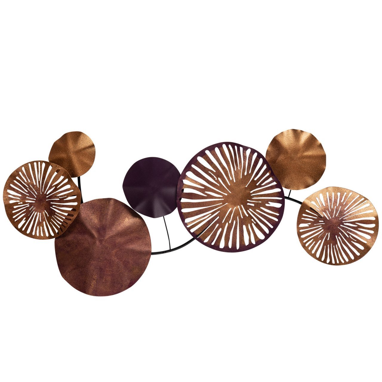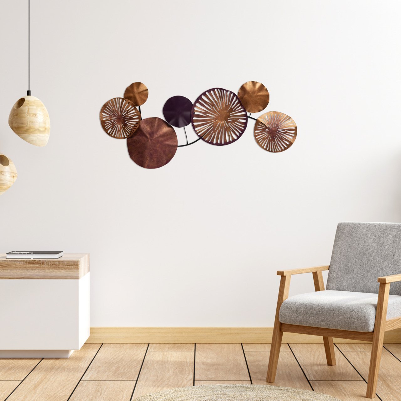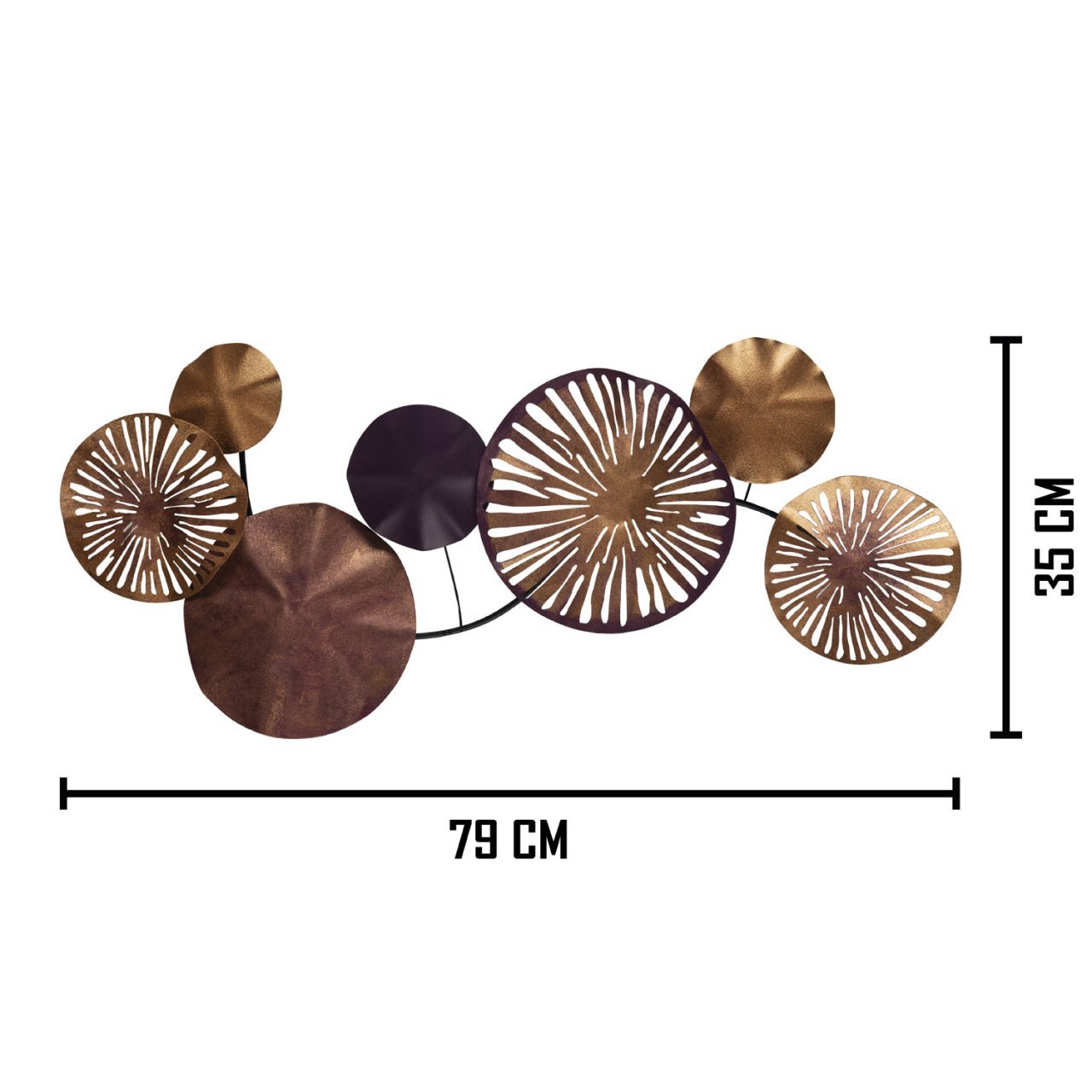 Yuvarlak Desenli Metal Eskitme Bakır Duvar Panosu 79x35 Cm