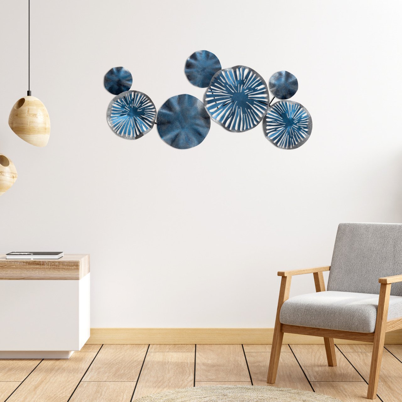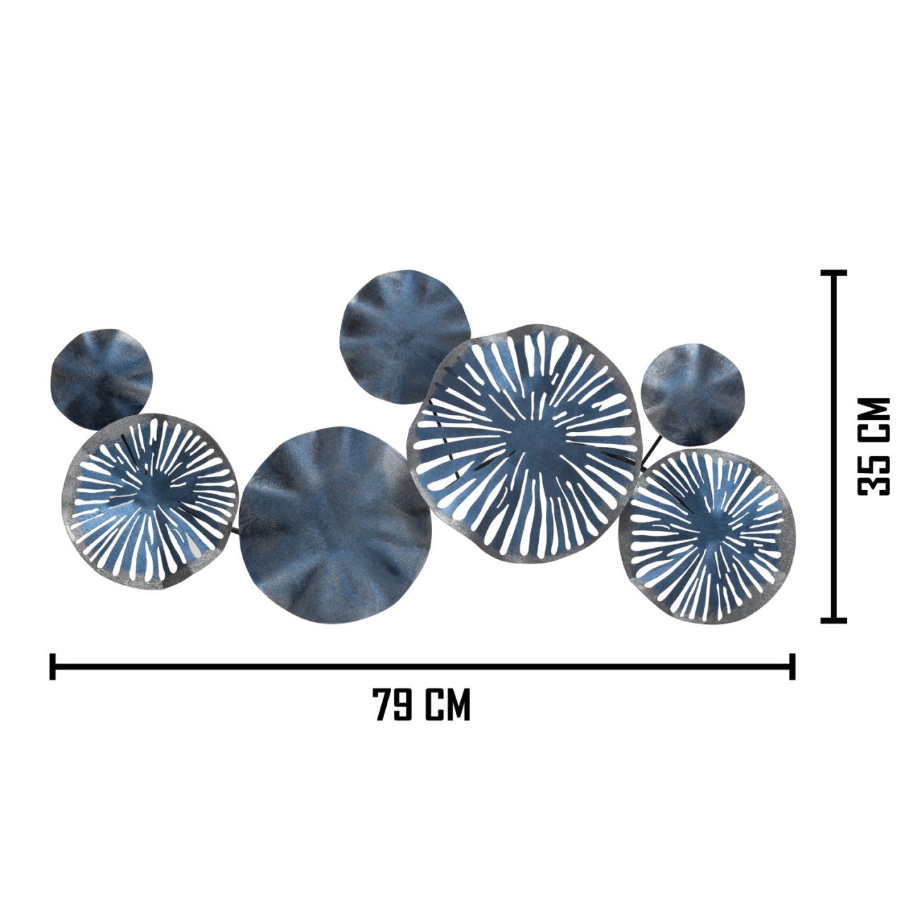 Yuvarlak Desenli Metal Eskitme Mavi Duvar Panosu 79x35 Cm