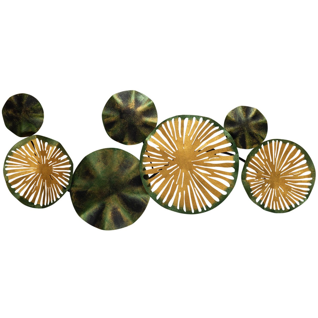 Yuvarlak Desenli Metal Eskitme Yeşil/dore Duvar Panosu 79x35 Cm