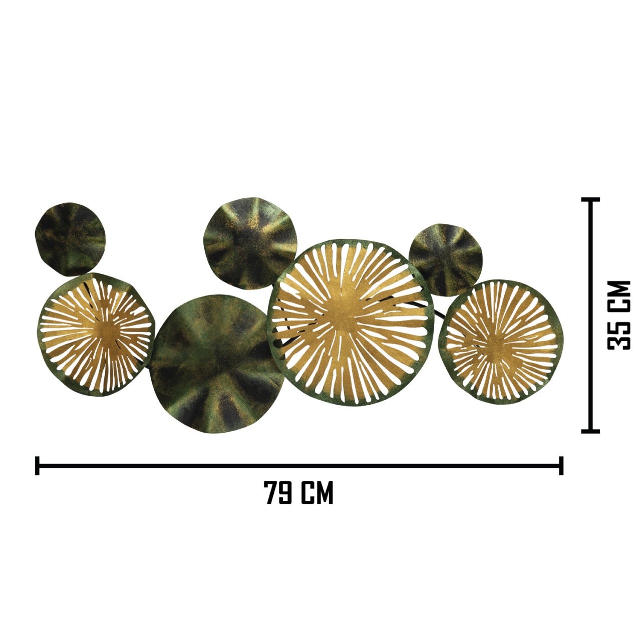 Yuvarlak Desenli Metal Eskitme Yeşil/Dore Duvar Panosu 79x35 cm.